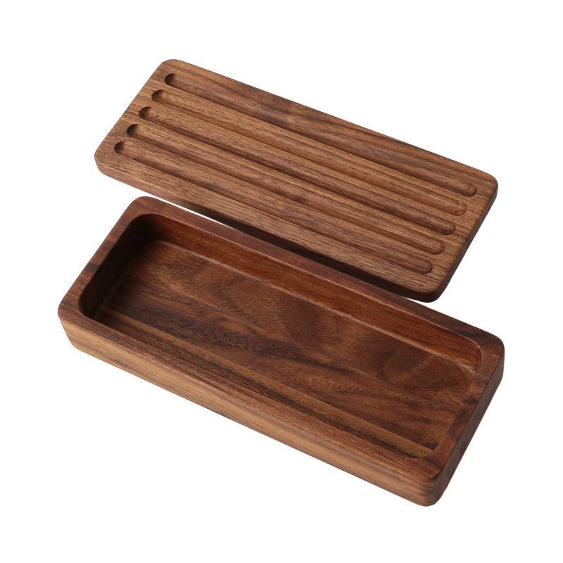 木肌が美しいウォルナット材のペンケースは経年変化を楽しむことができる素材で、見せる収納として使用できます。