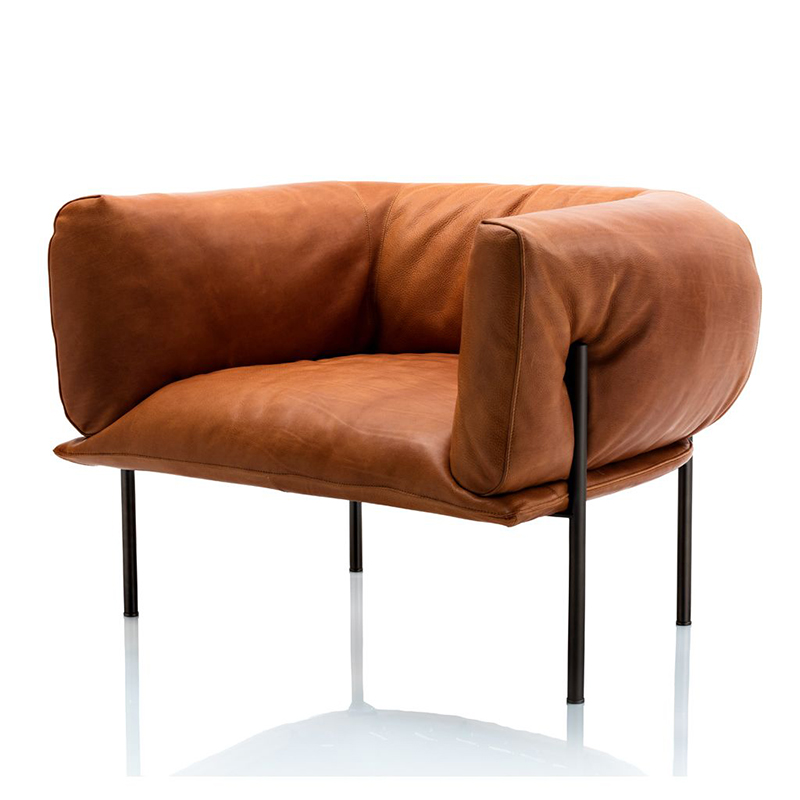 Molinariのレザー製品の伝統と技術を称えながら、一般的なイタリアのソファの角ばったイメージとは異なるものを作ろうと考えたLucyは、体をやさしく包み込むような丸みを帯びたデザインを着想。ボクシングのサンドバッグからインスピーレーションを得た独特のフォルムを完成させました。