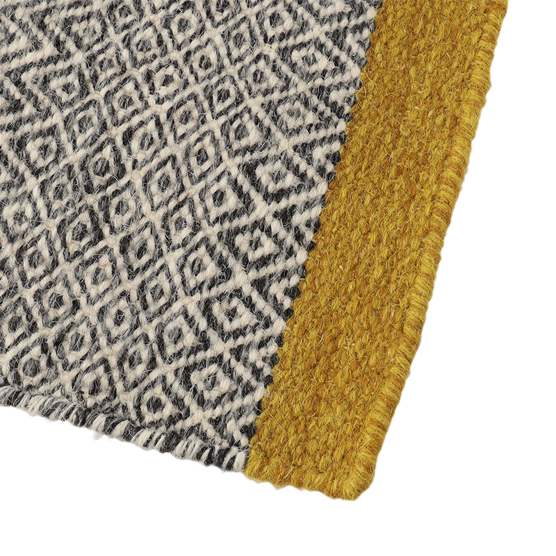 クリーニングについては専門店へご相談ください。ザ・コンランショップオリジナルデザインの「MINI DIAMOND KILIM」。特徴的なダイヤモンドのモザイク柄とサイドのカラーがポイントとなった落ち着いたデザインで、柔らかな風合いのキリムラグです。贅沢なコットンとウールの混紡素材で、一点ずつインドの職人の手仕事により織られています。玄関やキッチンなどに丁度良いサイズ感で、モダンで快適なインテリア空間を演出してくれます。