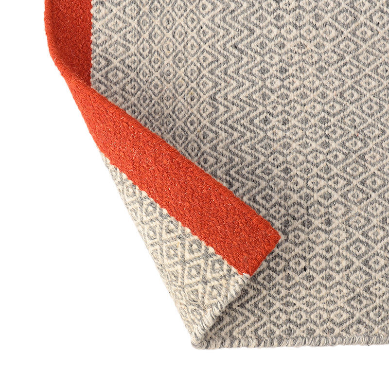 クリーニングについては専門店へご相談ください。ザ・コンランショップオリジナルデザインの「MINI DIAMOND KILIM」。特徴的なダイヤモンドのモザイク柄とサイドのカラーがポイントとなった落ち着いたデザインで、柔らかな風合いのキリムラグです。贅沢なコットンとウールの混紡素材で、一点ずつインドの職人の手仕事により織られています。玄関やキッチンなどに丁度良いサイズ感で、モダンで快適なインテリア空間を演出してくれます。