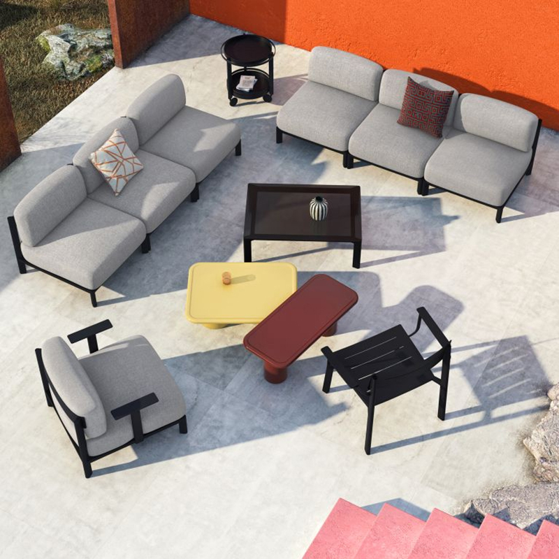 屋外での使用を想定して設計されたこのコーヒーテーブルは、錆にも強く、モダンなデザインと機能性を備え、屋外で理想的なシーンを演出してくれます。