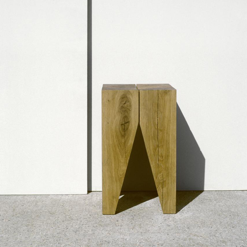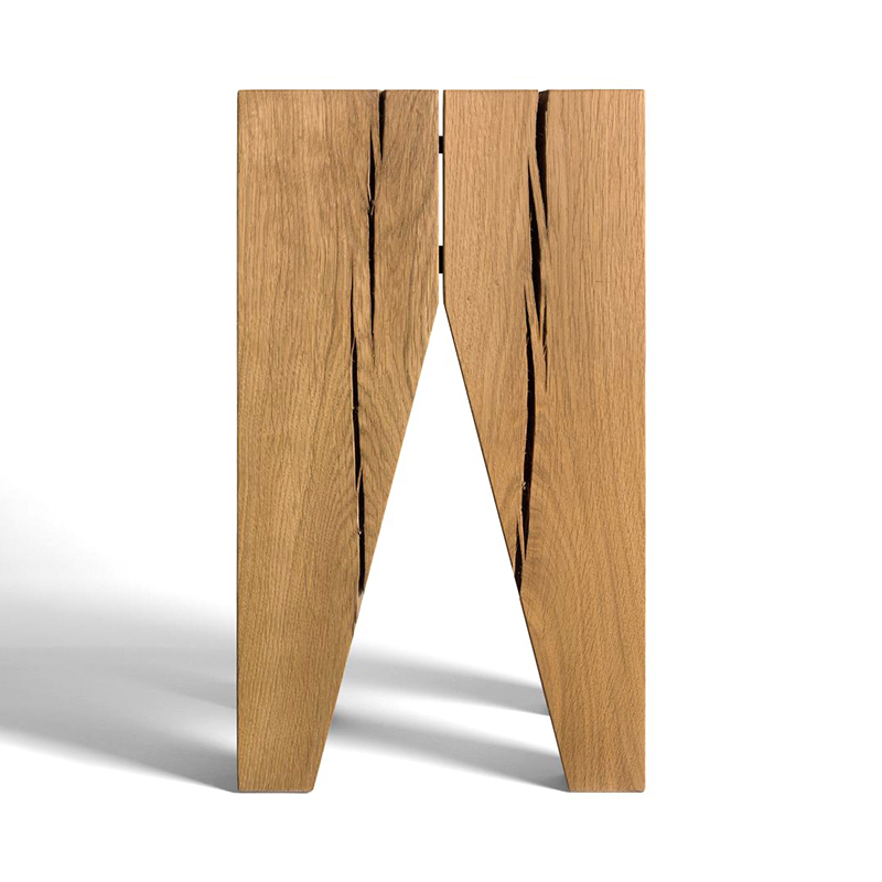また、割れ部分を斜めにカットすることで生まれる、くさび状のエッジも本作の特徴のひとつで、自然素材と職人技が融合した、唯一無二の存在感を放つスツールです。