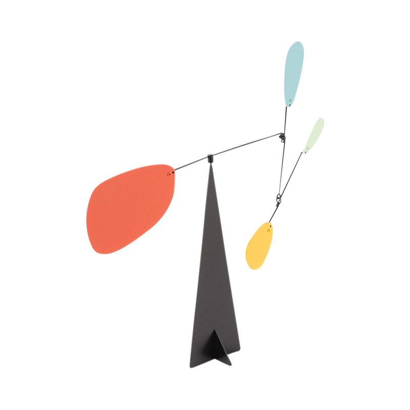 メタルパーツの有機的なフォルムと明快なカラーリングで空間にモダンな空気をもたらすだけでなく、空気の流れや手でそっと触れることでゆったりと揺れ動き、時間の流れさえも変える存在感を持っています。