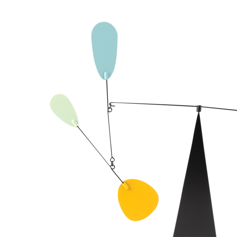 芸術的で繊細なデザインは、1950年代の北欧デザインや抽象的なアートからインスピレーションを受け、彼らの視点を通してモビールに表現されています。