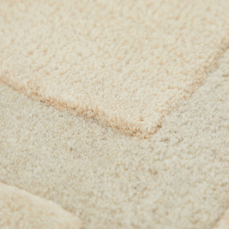 ASTEP ラグは、高・低パイルの技法を組み合わせ、大きな幾何学模様をデザインしています。