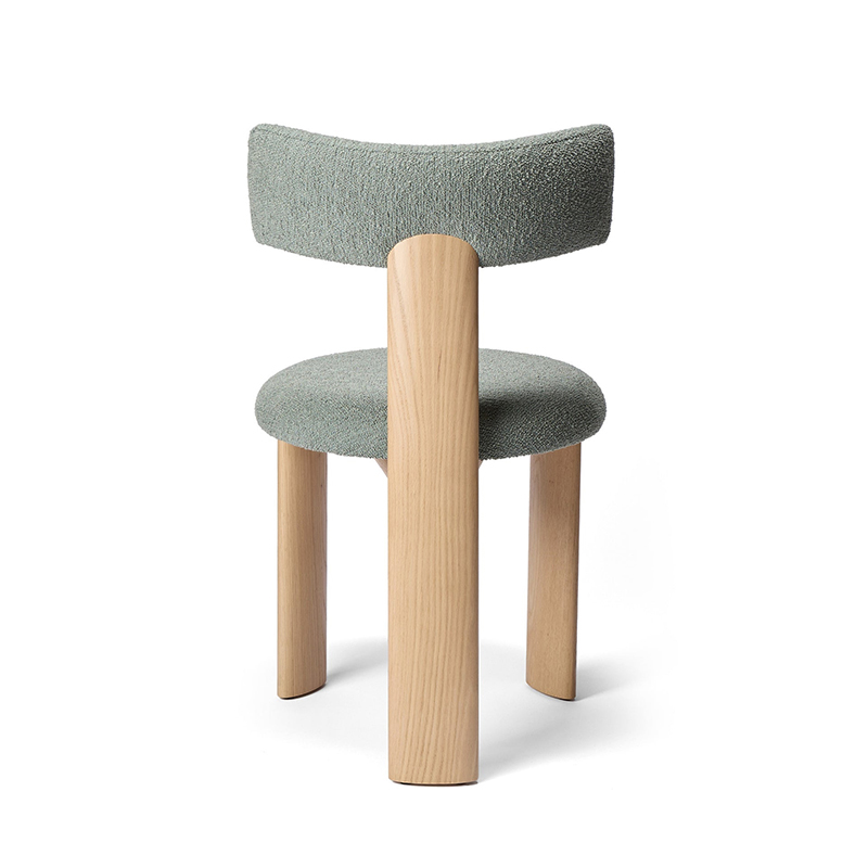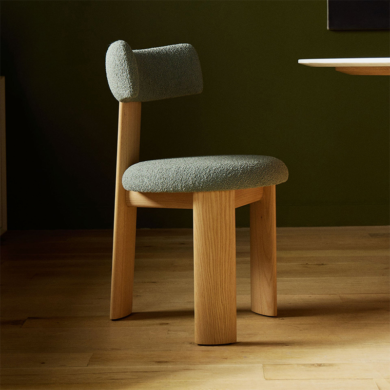 太めの木材を用いながら、あえて脚を三本にすることで重たさを感じさせず、柔らかな曲線を描くアイコニックなシルエットが、造形美を感じさせます。