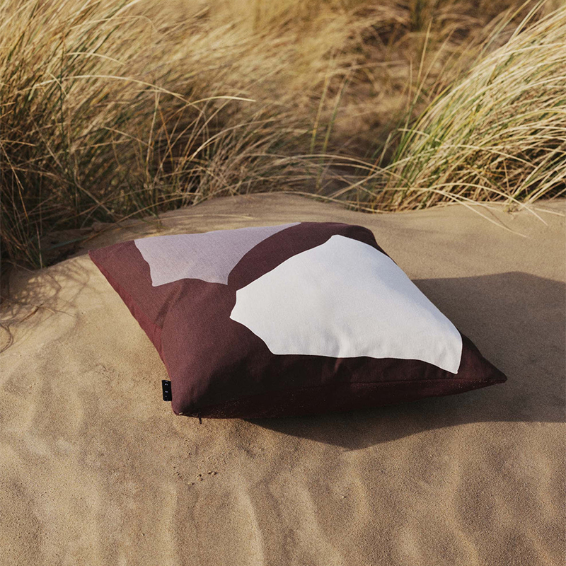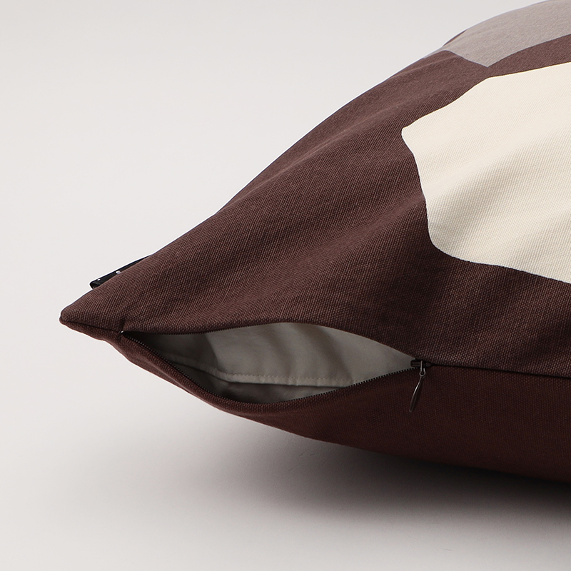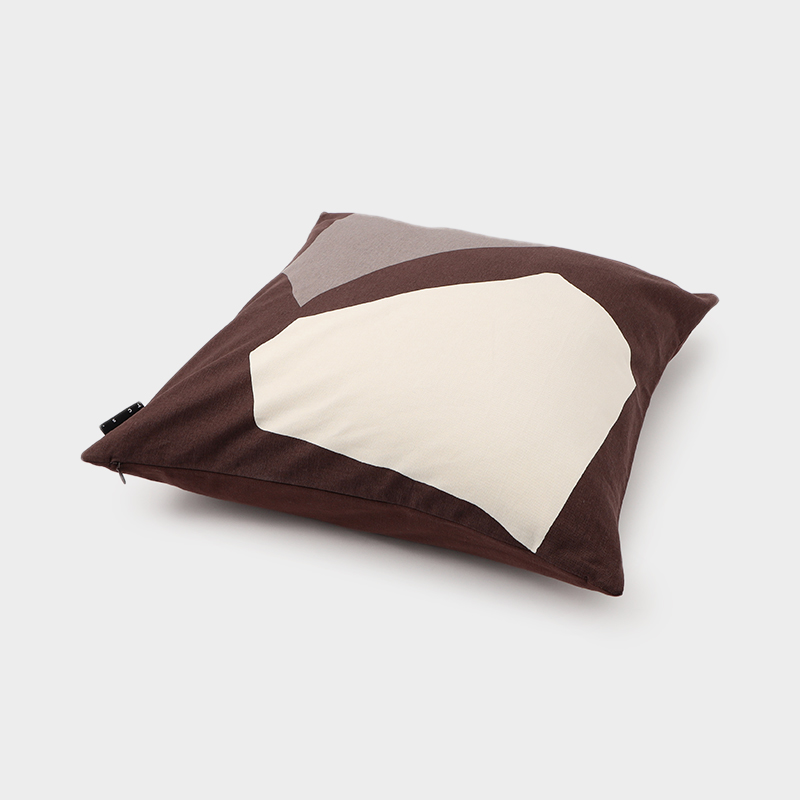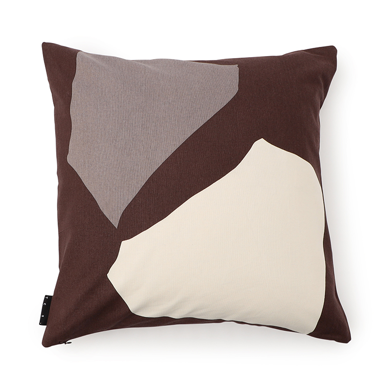 構造と偶然性の融合から着想を得た「アブストラクトタイルクッション」は、コットン100%の生地にスクリーンプリントされた印象的なデザインが特徴です。