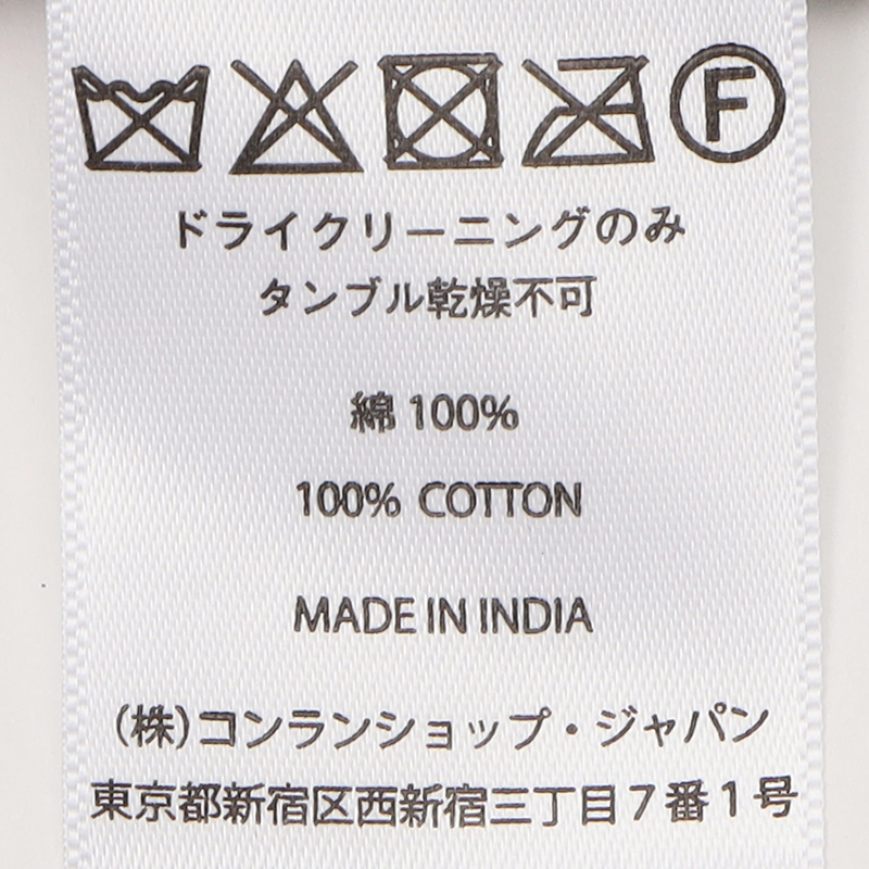 ドライクリーニングのみ、直射日光は変色の恐れがあるためお避け下さい。