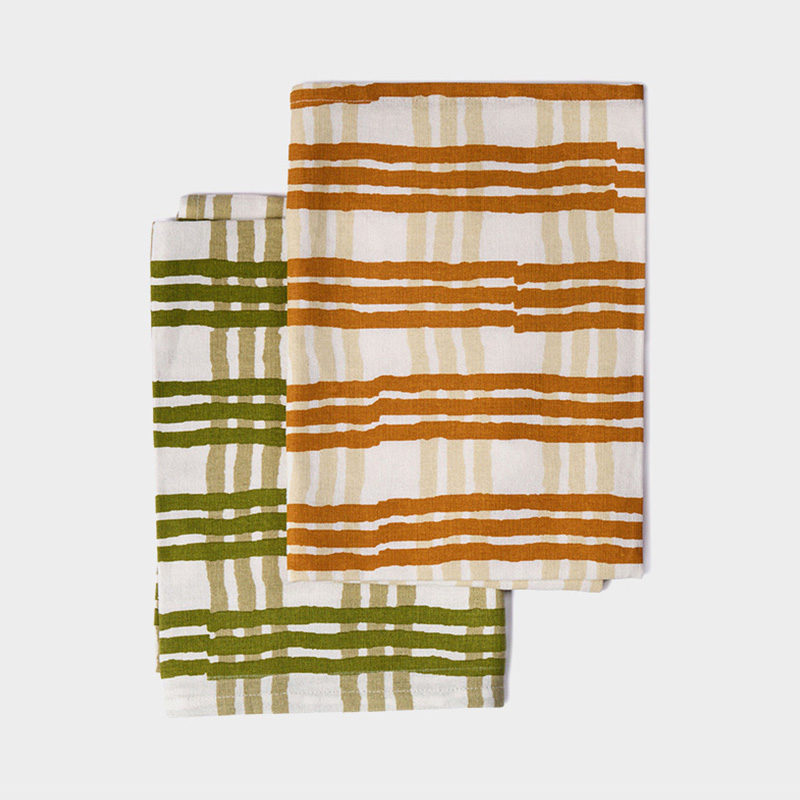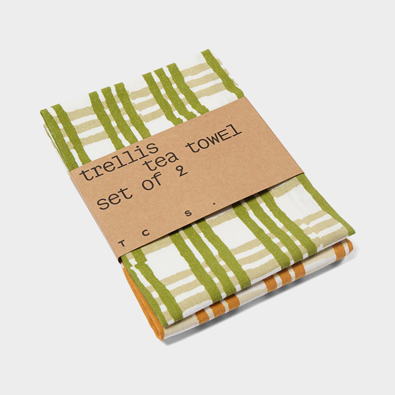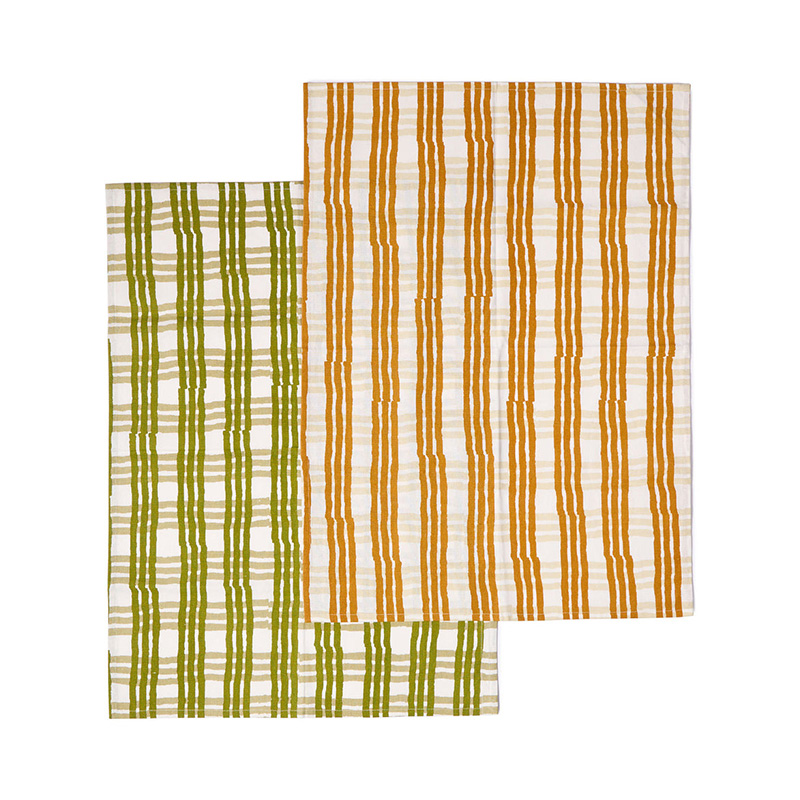 TRELLIS TEA TOWEL SETOF2 GREEN/ORANGE
