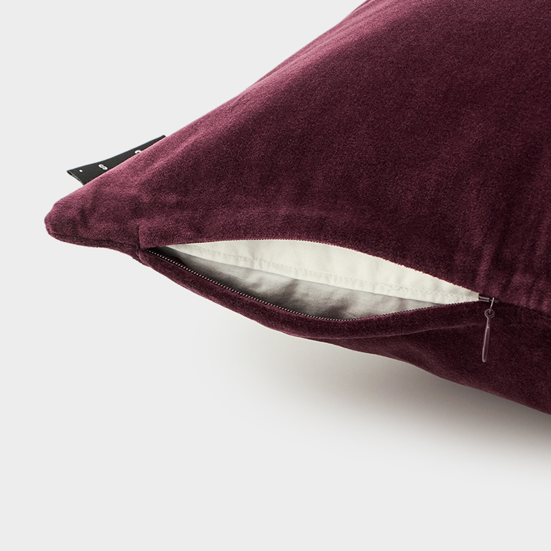 リッチな両面ベルベットを使用し、贅沢な質感とエレガントな印象を演出。深みのあるバーガンディカラーが洗練と温かみを添え、ソファやアームチェアのアクセントに最適です。