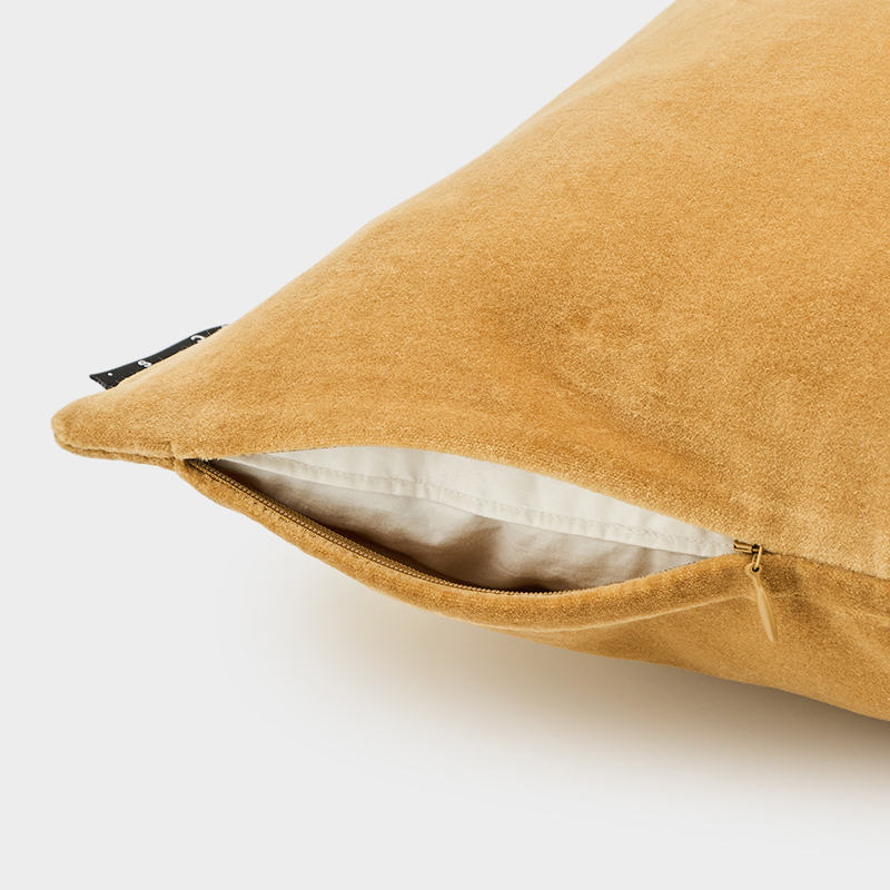 贅沢な両面ベルベットを使用し、洗練された上質さを感じさせるエレガントなデザイン。豊かなオークルカラーが温かみと華やかさを添え、空間に映える存在感を放ちます。