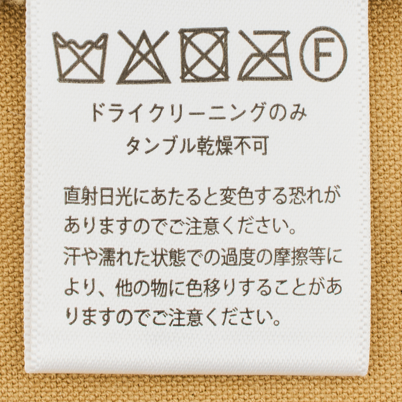 ドライクリーニングのみ、直射日光は変色の恐れがあるためお避け下さい。