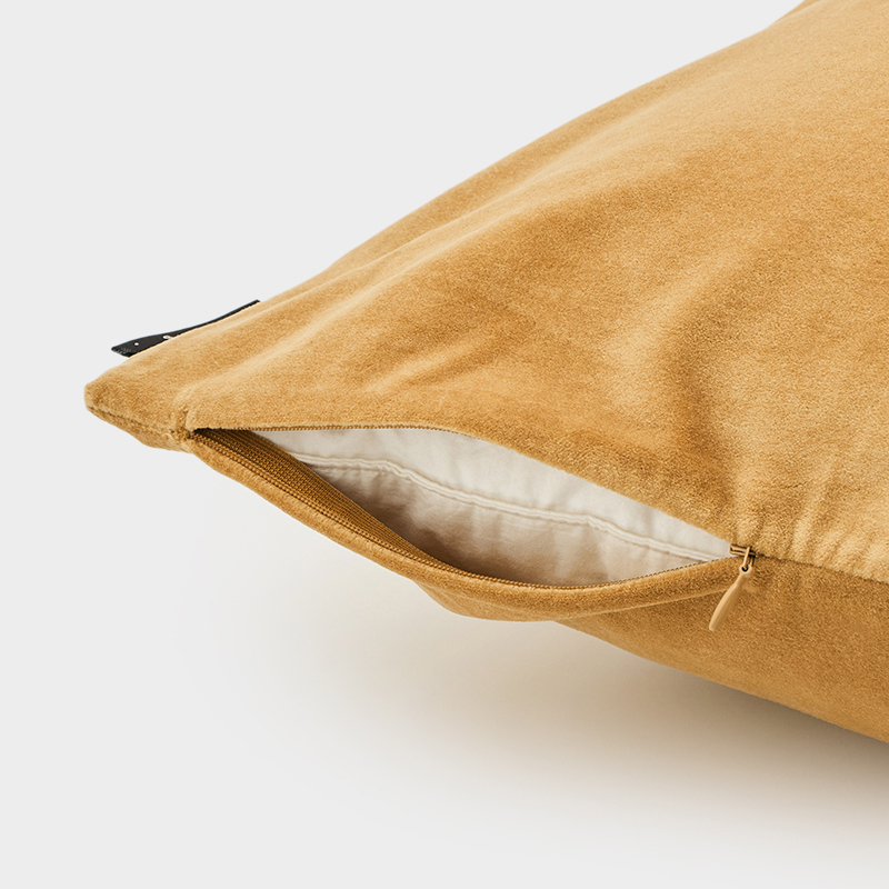 贅沢な両面ベルベットを使用し、洗練された上質さを感じさせるエレガントなデザイン。豊かなオークルカラーが温かみと華やかさを添え、空間に映える存在感を放ちます。