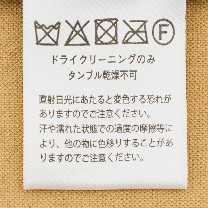 ドライクリーニングのみ、直射日光は変色の恐れがあるためお避け下さい。