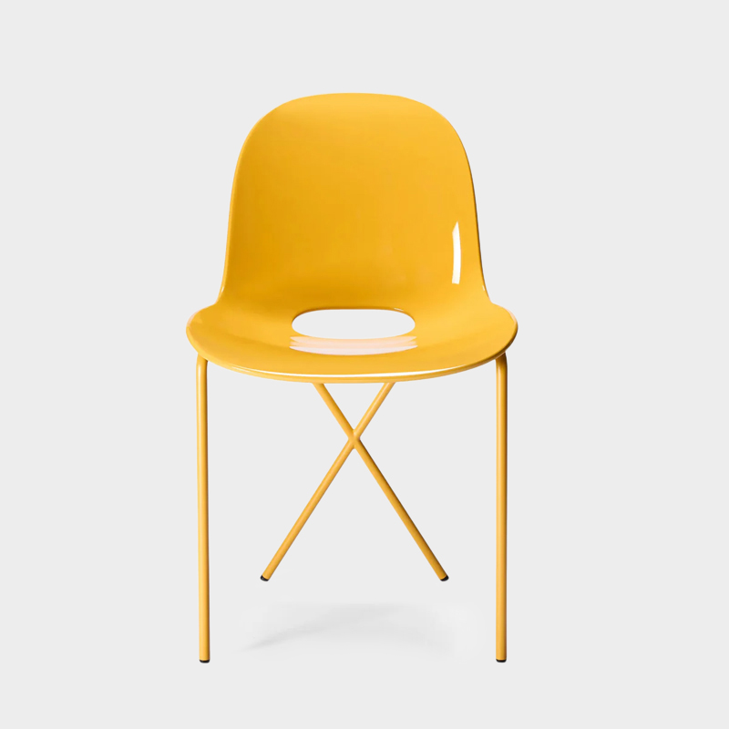 後ろ脚が交差するように配置されたフレームも、この椅子の印象的なデザインであり、名前の由来にもなっています。空間にアクセントを加える存在感のあるチェアです。The Conran Shop(ザ・コンランショップ)オリジナルデザインのCross Leg Gloss(クロスレッグ グロス)チェアは、艶のあるシェルと、マットなスチール脚を組み合わせた、美しいツートーンデザインが魅力のチェアです。