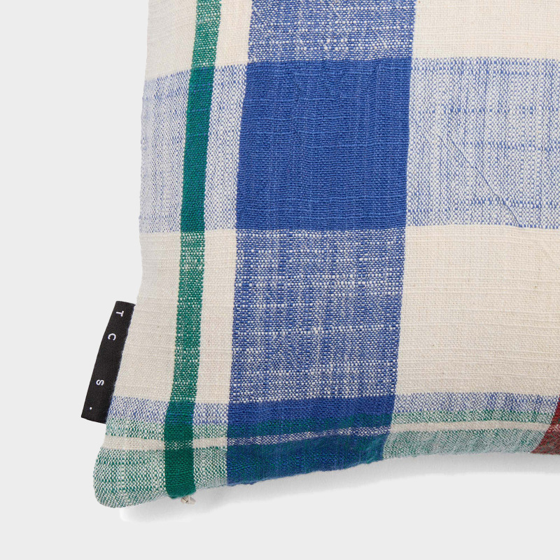TCS マラバール ウーブン クッションカバー60x40 ブルー/シナバー