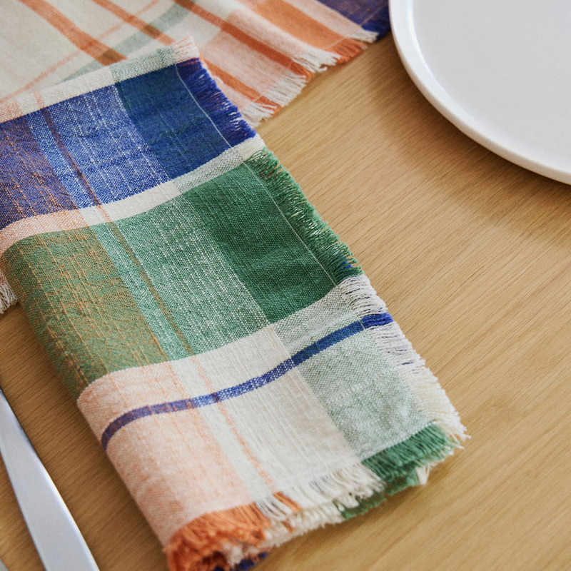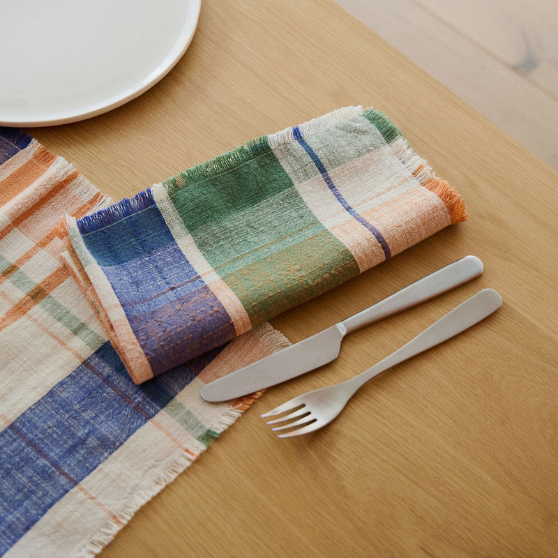 洗練された色彩と美しいチェック柄が、テーブルトップに上質な彩りを添え、日常のひとときを豊かに演出します。