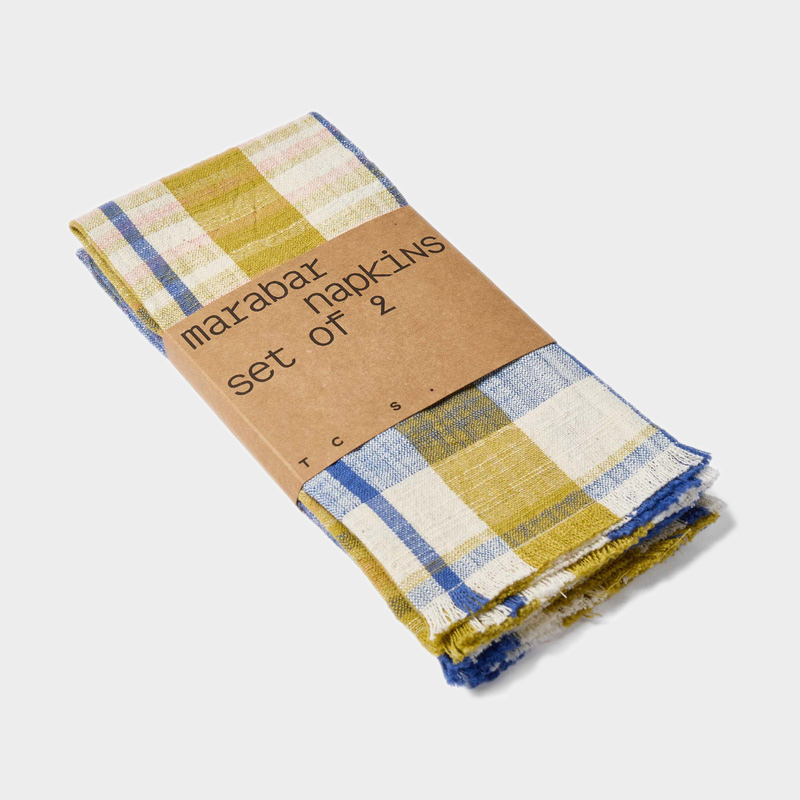 TCS マラバール ナプキン 2枚セット 50x50 ブルー/シャルトリューズ