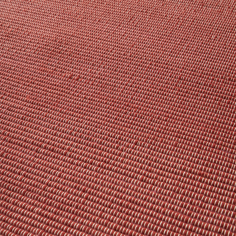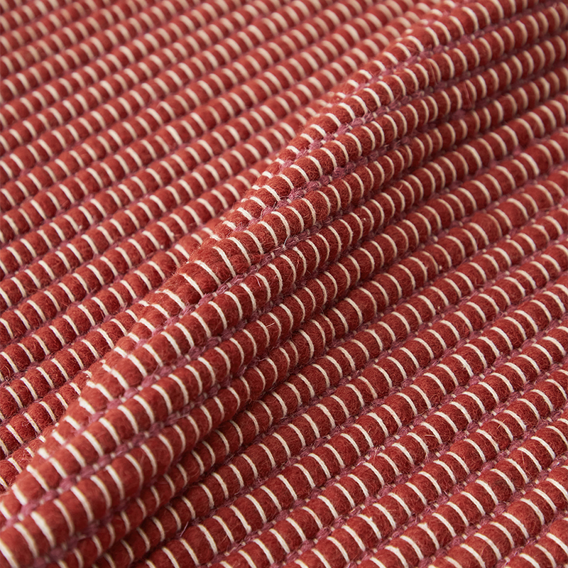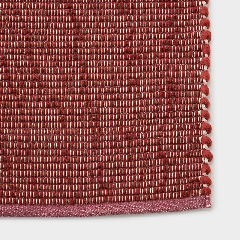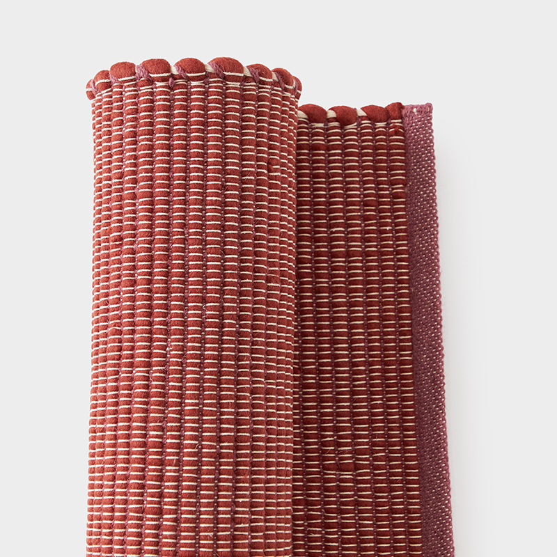 マーロンラグは、伝統的な織機で一つひとつ手織りされており、手仕事ならではの自然な風合いや個性が際立ちます。表情豊かなスラブ調の生地は、心地よい手触りと、リラックス感あふれるやさしい雰囲気を演出します。
