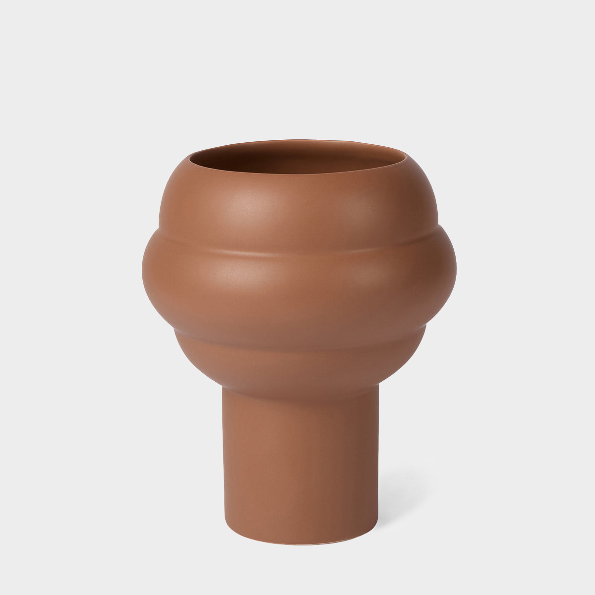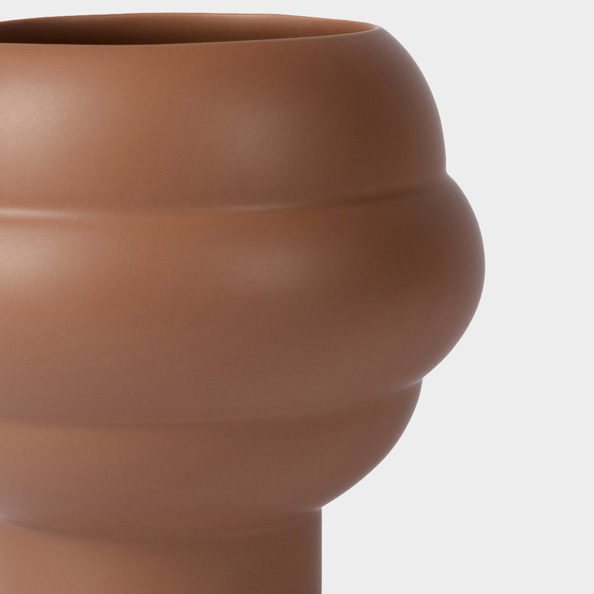 ポルトガルで制作されたこのコレクションは、アルヤンがノースロンドンのスタジオでろくろを挽いて仕上げた原型をもとに、鋳込み技法で成形された陶器製の花器です。建築的で柔らかな曲線を描くシルエットは光を受けて陰影を生み出し、自然な濃淡が彫刻的な美しさを際立たせます。