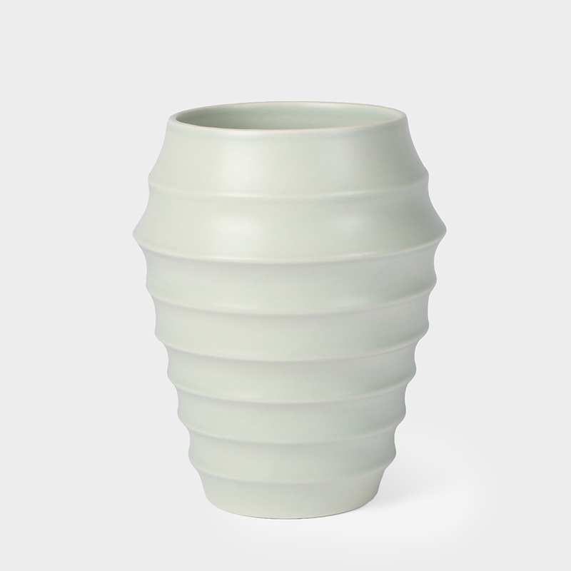 ポルトガルで制作されたこのコレクションは、アルヤンがノースロンドンのスタジオでろくろを挽いて仕上げた原型をもとに、鋳込み技法で成形された陶器製の花器です。建築的で柔らかな曲線を描くシルエットは光を受けて陰影を生み出し、自然な濃淡が彫刻的な美しさを際立たせます。