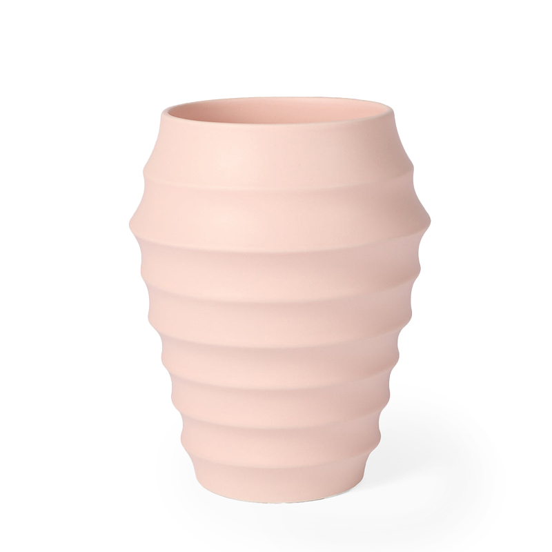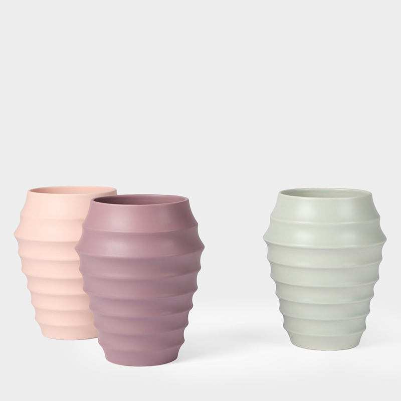 ポルトガルで制作されたこのコレクションは、アルヤンがノースロンドンのスタジオでろくろを挽いて仕上げた原型をもとに、鋳込み技法で成形された陶器製の花器です。建築的で柔らかな曲線を描くシルエットは光を受けて陰影を生み出し、自然な濃淡が彫刻的な美しさを際立たせます。