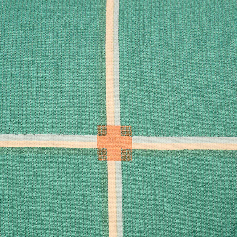 インド製の100%コットン素材を使用し、スクリーンプリントの柄に繊細なドリ刺繍を施すことで、奥行きのある表情に仕上げています。