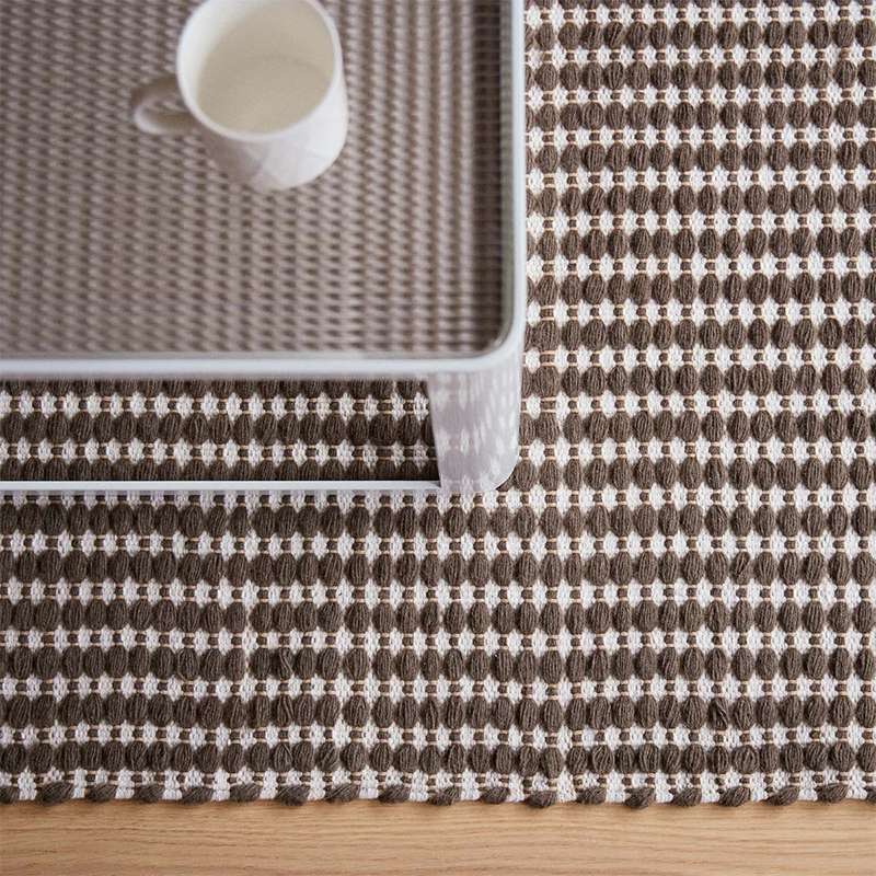 ・ラグは週に1度、掃除機(弱~中程度)をかけてください。掃除機をかける際は、必ず繊維の方向に沿ってかけてください。強く押し付けたり、歯のついた掃除機や回転ブラシを使用すると、繊維が傷むことがありますのでご注意ください。