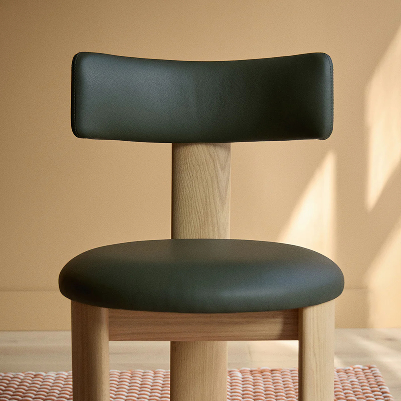 太めの木材を用いながらも、脚を三本にすることで重たさを感じさせないバランスを実現。柔らかな曲線を描くアイコニックなシルエットが、彫刻のような造形美を際立たせ、空間に軽やかな存在感をもたらします。