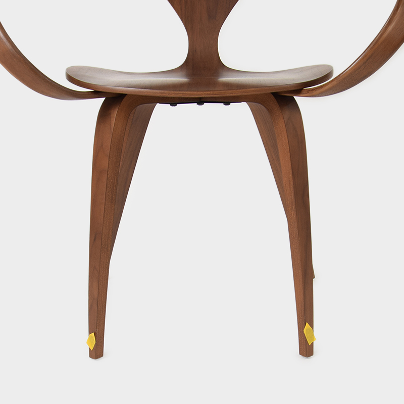 チャーナーのオリジナルの図面から細部まで忠実に再現されたアームチェアは、成型合板と無垢の曲げ木構造の完璧な融合であり、構造的に堅牢でありながらエレガントで軽量なのが特徴です。