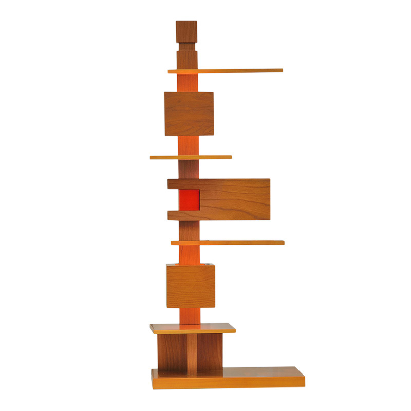 タリアセン4は、1952年にタリアセンのヒルサイド・ホーム・スクールの劇場が焼失し再建された際に、ライトがペンダントランプを改良してフロアランプに仕立てたタリアセン2より小ぶりで、さらに日本住宅環境のスケールに合わせたサイズにしたものです。ランプを覆ういくつものブロックで制御された上下方向の光はさらに遮光板に反射し、間接光の心地よい明るさが得られます。遮光板は、ブロックの上下どちら方向にも設置が可能です。下側に設置した場合、アッパーライトとして、より上方向へ光が放射されます。