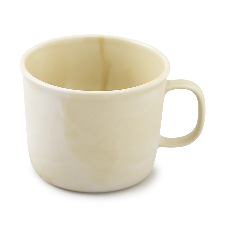焼き物の仕上げとしては珍しい「サンドブラスト加工」を施し、素地のような質感を表現しました。口元はぽってりとした琺瑯仕上げで、唇の形に優しくフィットします。