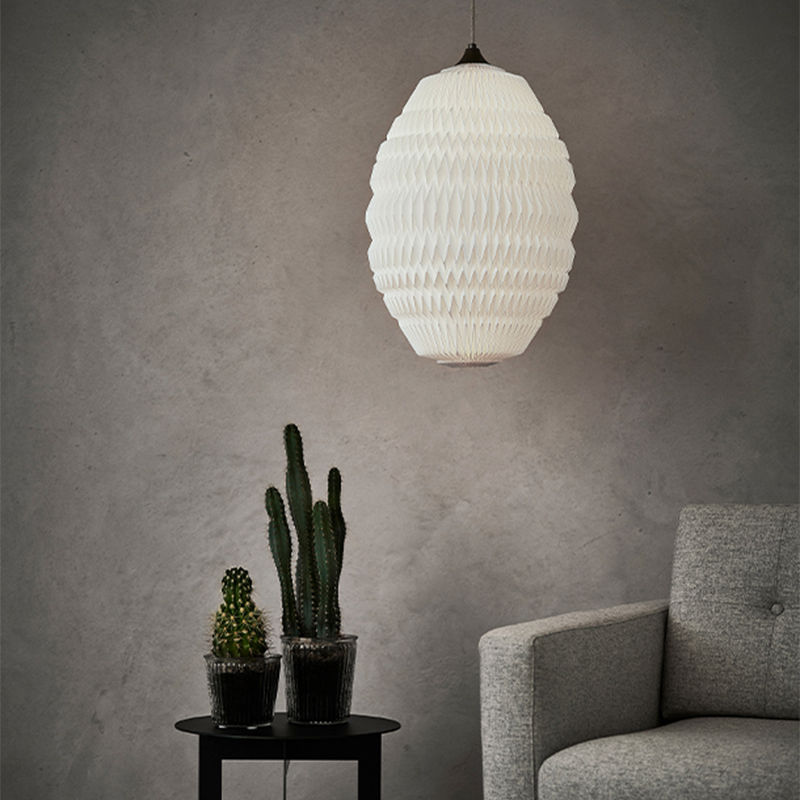 ※LED電球を推奨しています。LE KLINT(レ・クリント)の照明シリーズ「カレオ」。名はラテン語に由来し、「強調する、際立たせる」という意味です。 デザイナーのリッケは、レ・クリントの伝統に基づいて、紙製のシェードを選び、複雑な折りを施すことでこれまでにない照明を完成させました。職人技が光るカレオのシェードからは、レ・クリントならではの優美な光を放ちます。1灯でお使いいただいても、同じカレオの中から型違いを組み合わせても素敵な空間を演出できます。テーブルの上やソファの近くに、あるいはお部屋の真ん中に。場所を選ばずお使いいただけます。