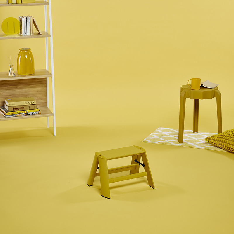 自立機能により、置き場所を選ばず、使いたい時にすぐに使える「隠さない脚立」ルカーノに新色が仲間入り。マットな風合いが空間に溶け込み、彩りを与えます。
