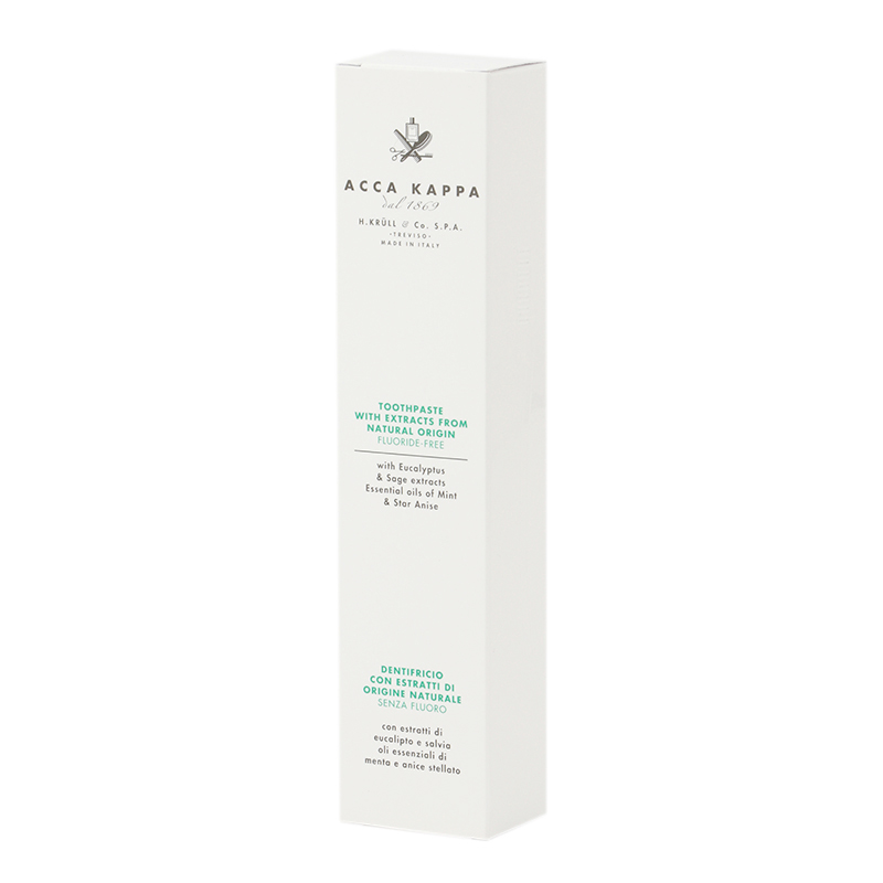 ユーカリとセージエキスを配合した天然フッ化物不使用のトゥースペーストです。140年にわたり、変わることのない伝統のクオリティを誇るイタリアのラグジュアリーブランド ACCA KAPPA(アッカ カッパ)。