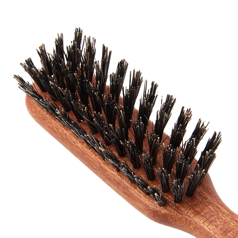 天然の猪毛が髪にキューティクルを守りながら艶を与えてくれます。ブラシは猪毛100%タイプ。
