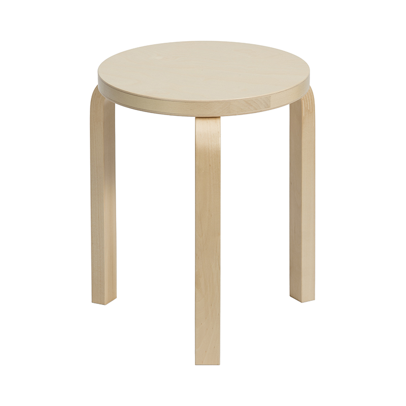 アルヴァ・アアルトにより1933年にデザインされたスツール60は、座面と三本の脚という最小限の要素で形作られています。