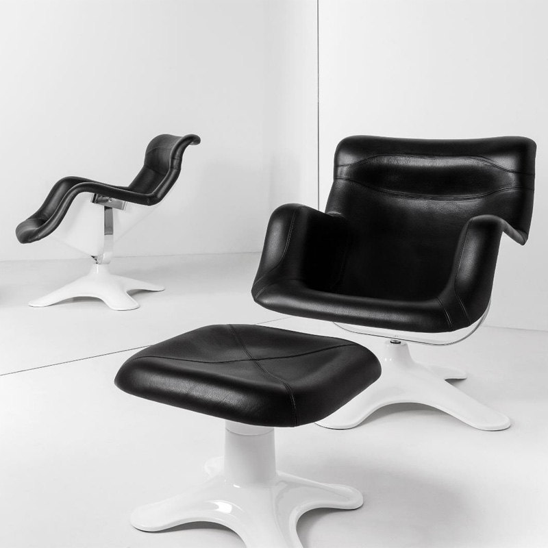 フィンランドのデザイナー、Yrio Kukkapuro(イリヤ・クッカプーロ)の代表作、Karuselli(カルセリ)は、その独創的なフォルムと、宙に浮いたようなロッキング機能が生み出す快適な座り心地を実現した究極のラウンジチェア。20世紀の名作チェアとして人々を魅了し続けています。