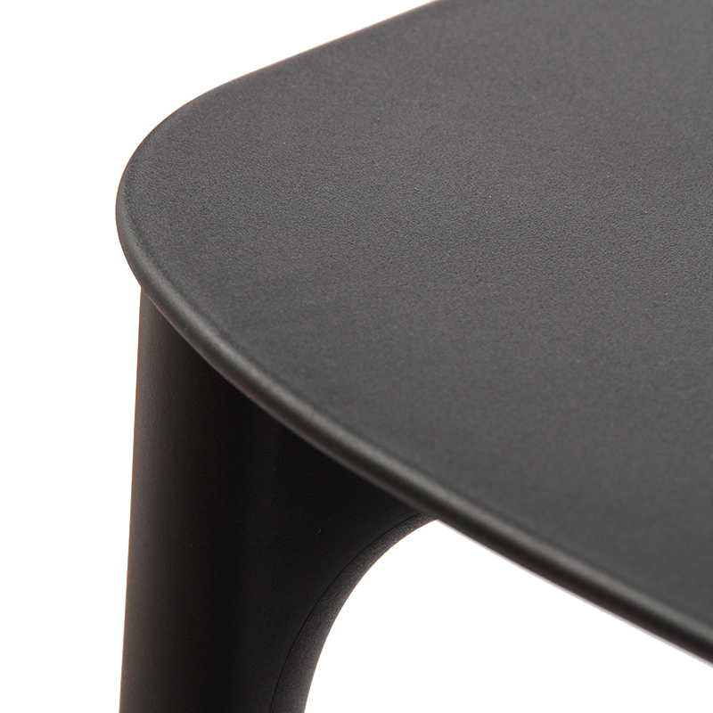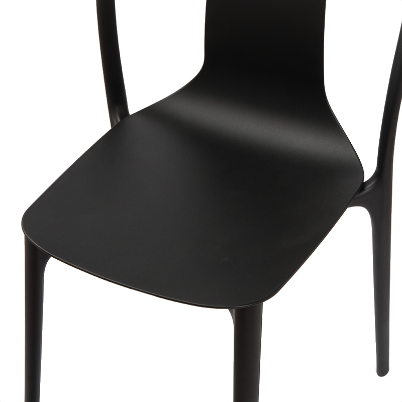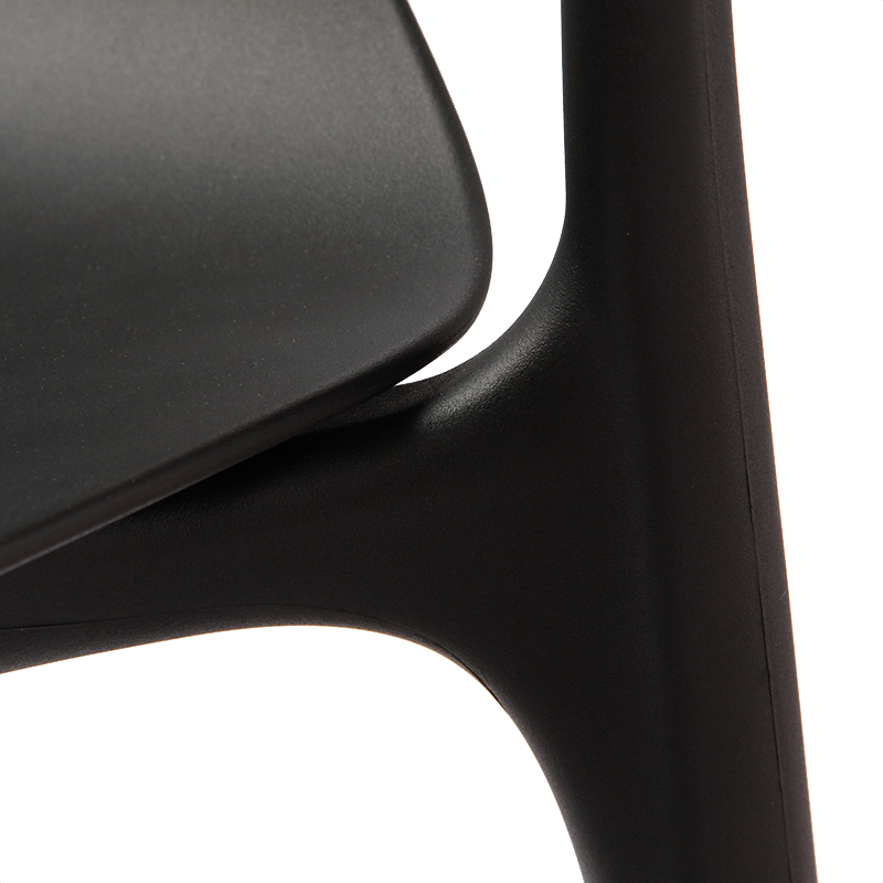 スレンダーな黒のフレームは、脚や背面に向かって書道の線を思わせるようなラインを描いています。一方シートシェルは、広めの座面が背もたれにかけて細くなっていき、非常に薄いシェルを支えています。