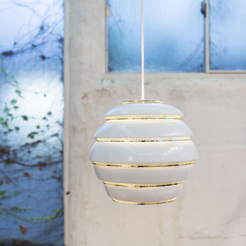 フィンランドを代表する建築家・デザイナーのアルヴァ・アアルトにより手がけられたペンダント照明、Beehive。1953年にデザインされたもので、その名のとおり蜂の巣がモチーフとなっています。