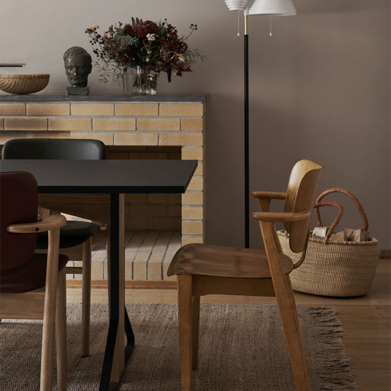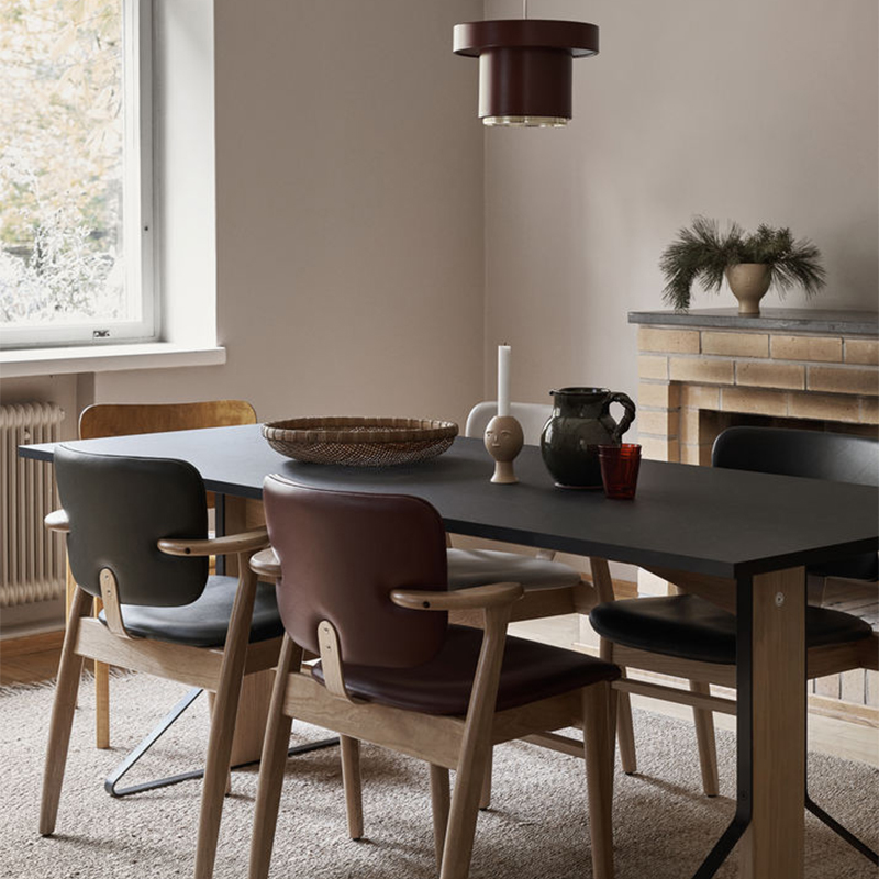 ”縦方向”の支えとなる頑丈な木製部分と、”斜め方向”の支えとなるスチール部分。異なる素材の組み合わせが特徴的なテーブルは、耐久性はもちろんのこと、全体のデザインにリズムをもたらし、独自のシルエットを形作っています。