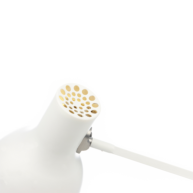 ANGLEPOISEの特徴であるスムーズなアームの動きは、重量とアームにリンクされる3本のバネの張力がバランスされることによって生まれます。加えてさらに微妙なバランスについてはアームジョイント(可動部)のナットの締め付け具合による調整が必要になります。出荷時にこのナットの締め付けが緩かったり、また動かしているうちに次第に緩みが発生し、思うポジションにシェードが止まらないことがあります。この場合は付属のレンチでアームジョイント(可動部)のナットを締めつけて、ベストなバランスに調整してみてください。また、詳しくは器具に同梱されている「取扱説明書」と「組立てと調整に関するご注意」をご参照ください。