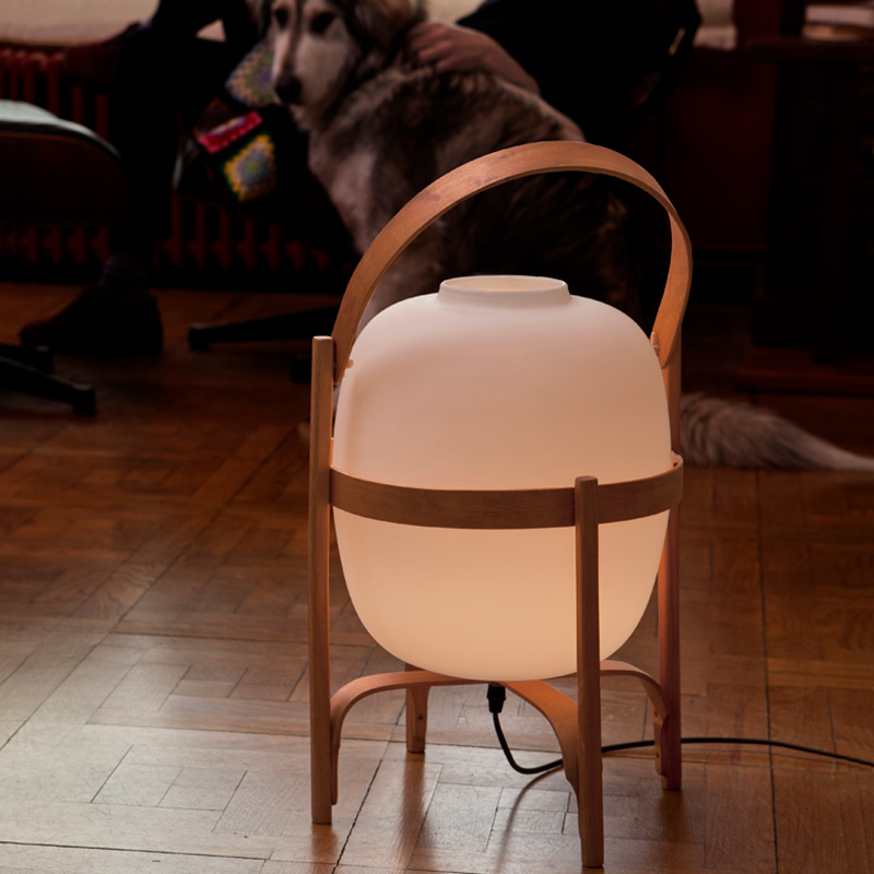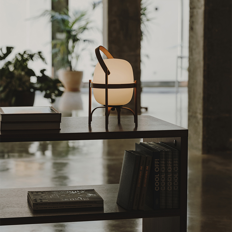 デザイナーのMiguel Miraはスペイン語で「バスケット」と名付けたように、持ち運びのしやすさをこのランプの大きな特徴としています。