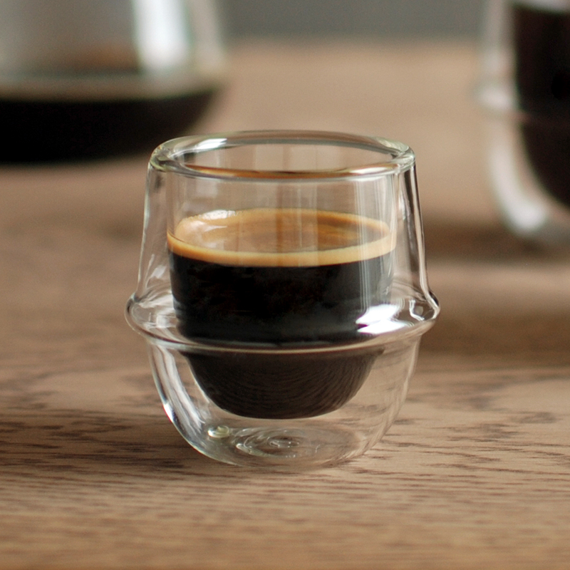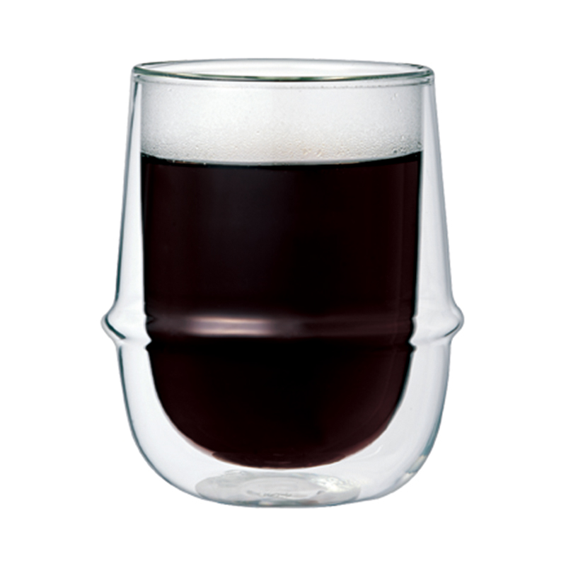 耐熱ガラスの二重構造で注いだものが宙に浮かんだように見えるKRONOSは、土星の輪を思わせるリングは心地よいグリップ感をもたらし、カップの内側はドリンクを飲み干しやすい角度に設計されています。