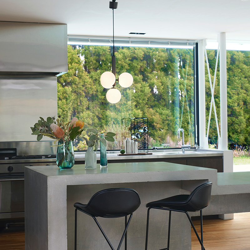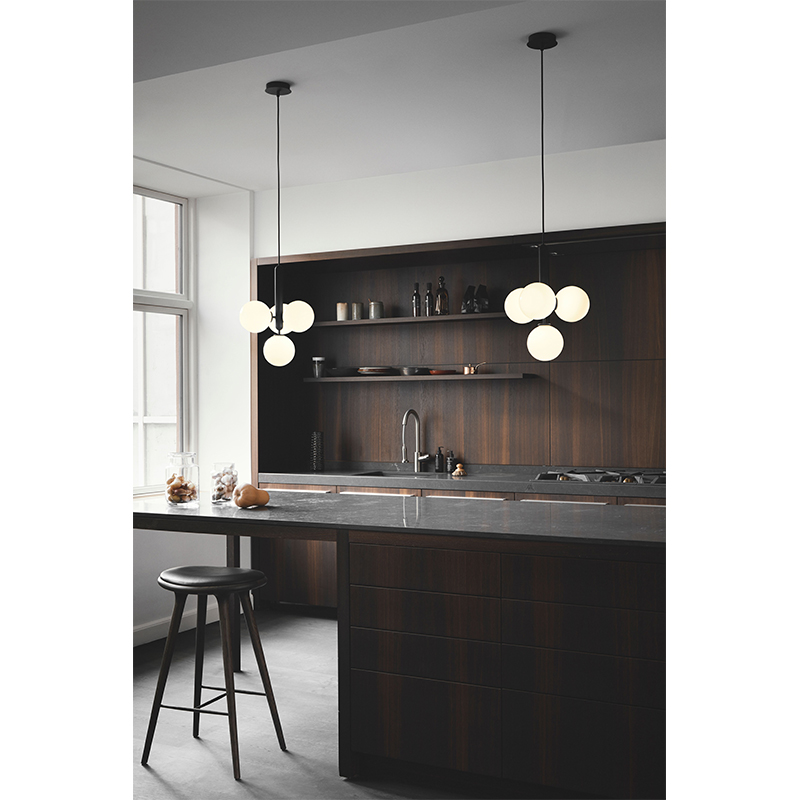 シンプルながらも、そのディテイルやバランスにまでこだわりデザインされたMIIRAは、1灯吊りでも存在感があり、多灯吊りにすることで、さらにその美しさが際立ちます。