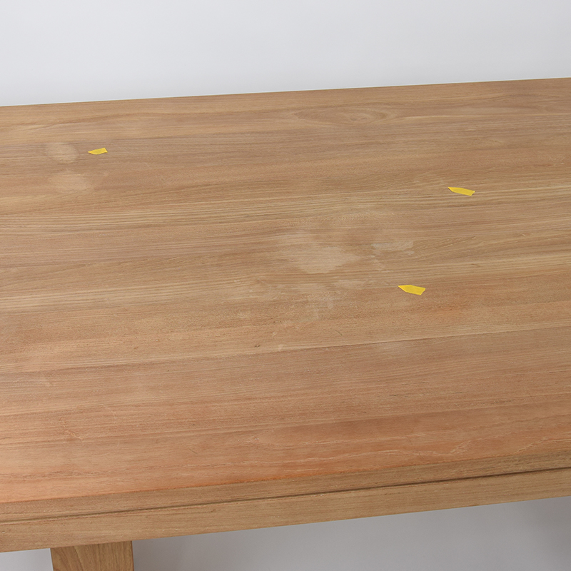天板と伸長板の間、2mm隙間あり。天面に複数輪染み有り。天板の継ぎ目に0.1mmほどの隙間あり。
