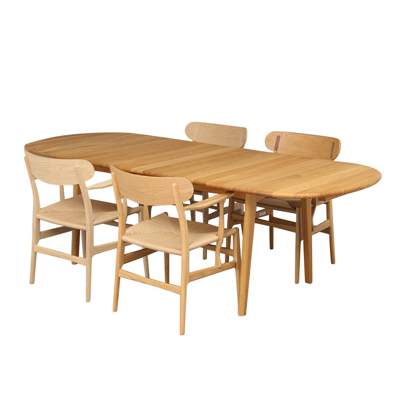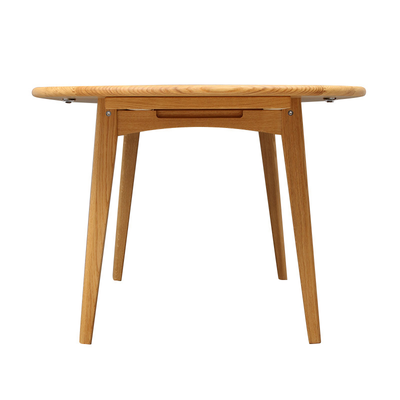 来客時など使用人数や用途に合わせて伸長することが可能な使い勝手の良いデザインです。1982年にハンスJ.ウェグナーによりデザインされたダイニングテーブル。