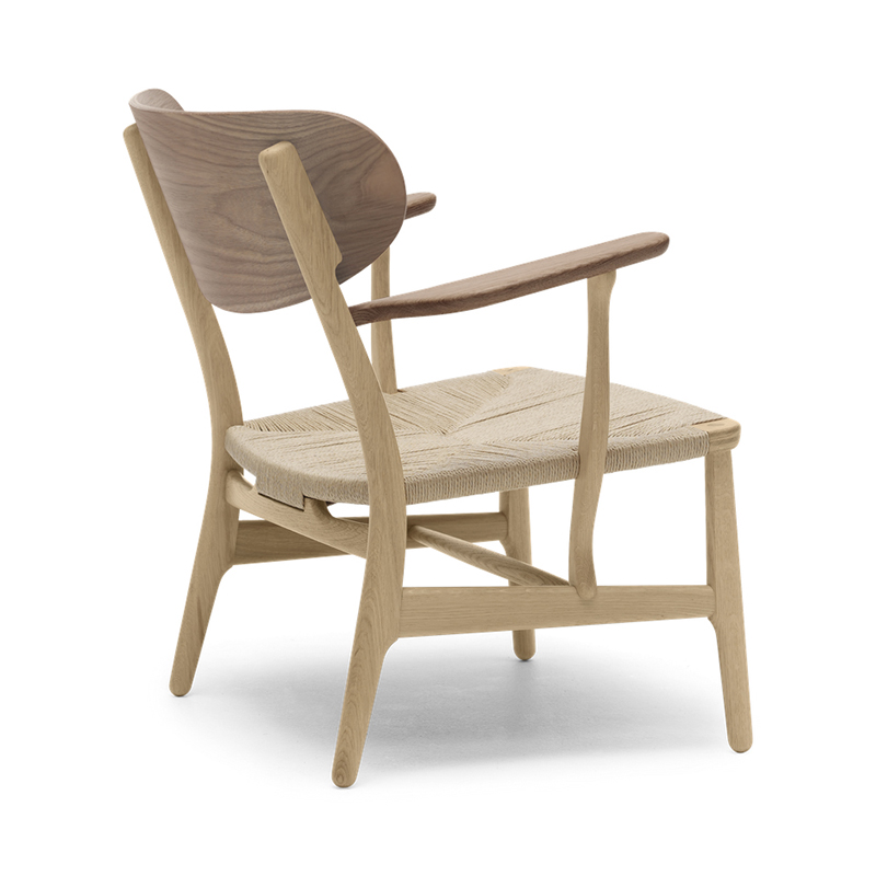 仕様 フレーム:オーク材 オイル仕上げ,、アーム/背:ウォルナット材、キャップ:オーク材、ナチュラルペーパーコードハンス J. ウェグナーのラウンジチェア CH22は、カール・ハンセン&サンにより2016年、数十年の年月を経て生産が再開された復刻モデル。