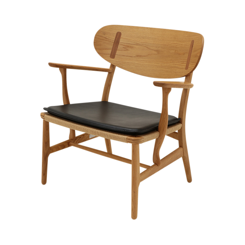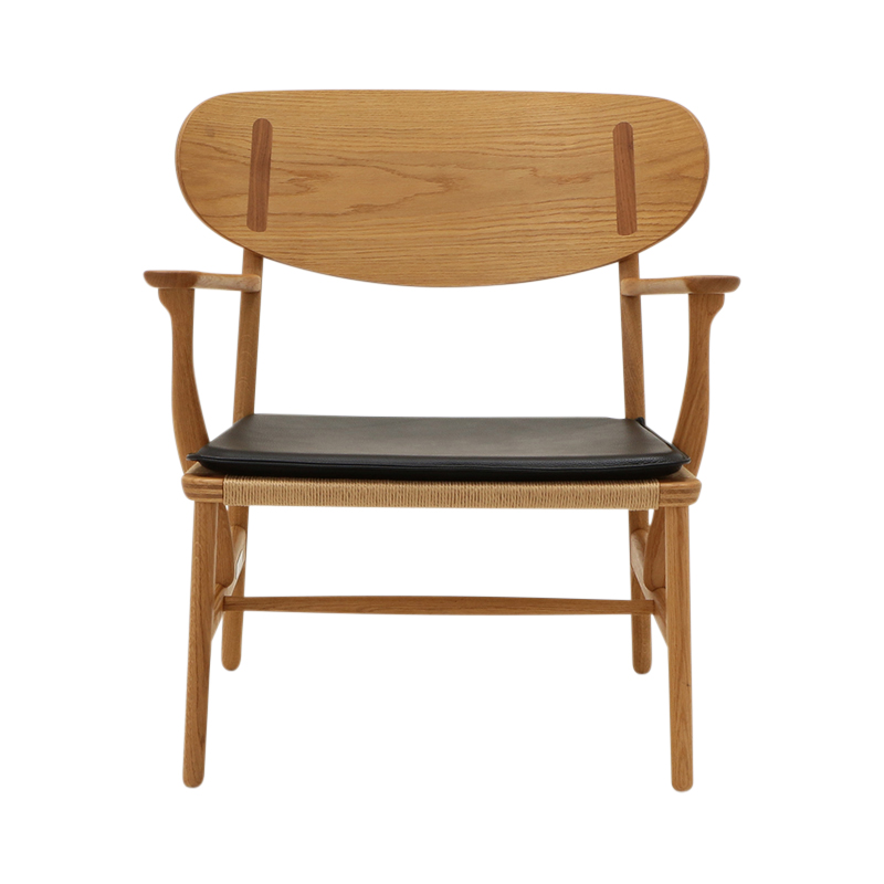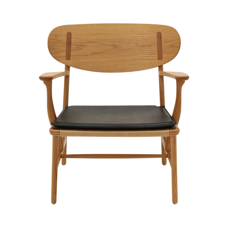 素材は表面にエンボス、およびコーティング加工を施したバフレザー、Lokeコレクション。表面加工してあるため、お手入れがとても簡単な柔らかくてエレガントな皮革です。CH22チェア用に開発された革張りのクッション。両面を使用することが可能です。チェアの座面にきちんと収まるよう前脚、および後脚に合わせて各コーナーを加工してあります。
