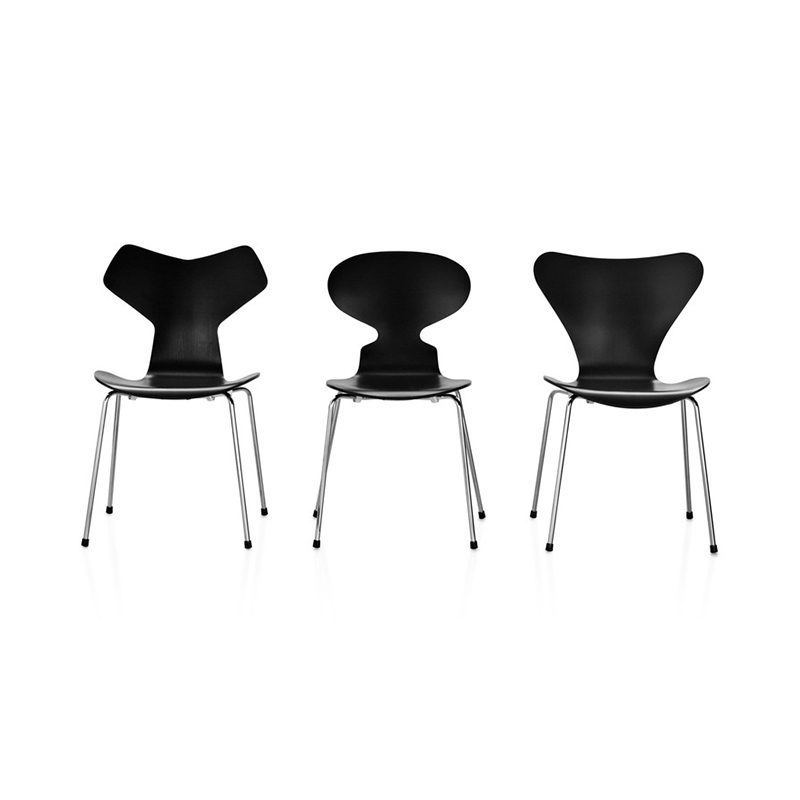 ベースはシートの外側に向けて少し広がっているため、簡単に一列に並べたり、スタッキングしたりすることができます。目立たないようにとシート下のディスクにマウントされたベースがヤコブセンデザインのクリーンでミニマルな美学を一層引き立てます。